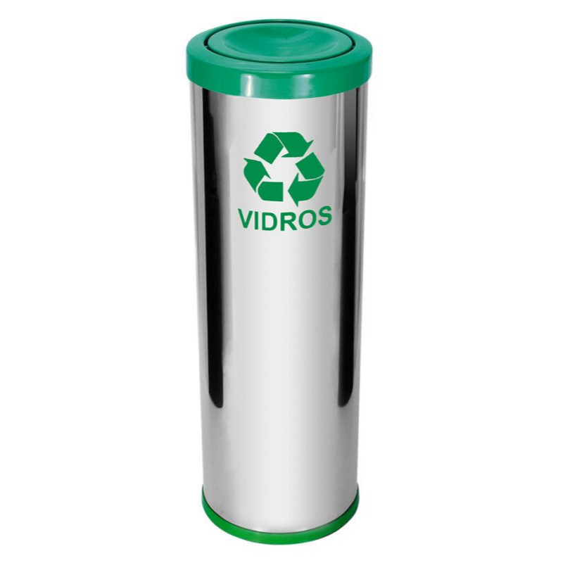 Lixeira confeccionada em aço inoxidável AISI 430, fundo em plástico ABS de alta resistência e tampa meia esfera plástica injetada em polipropileno (PP).